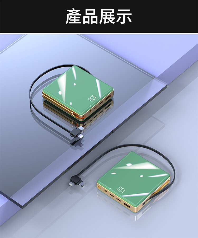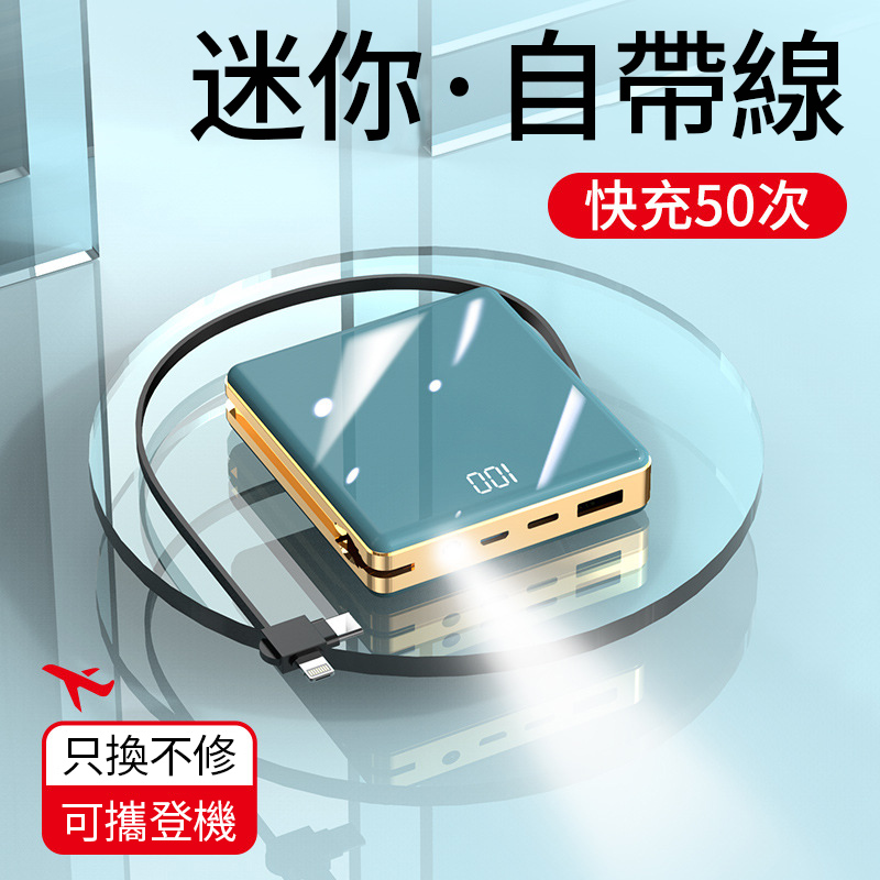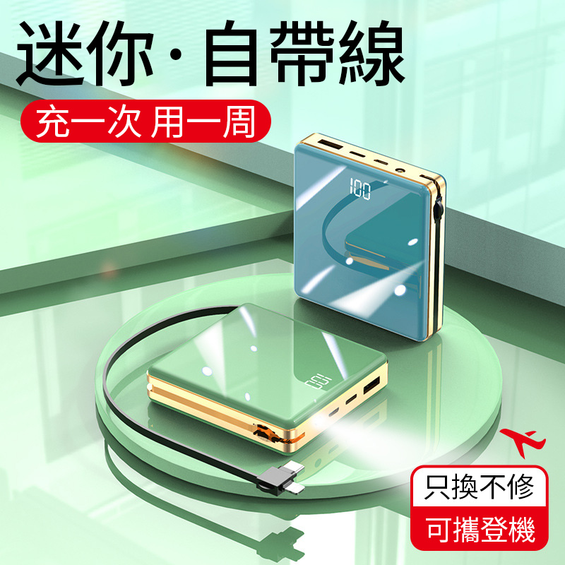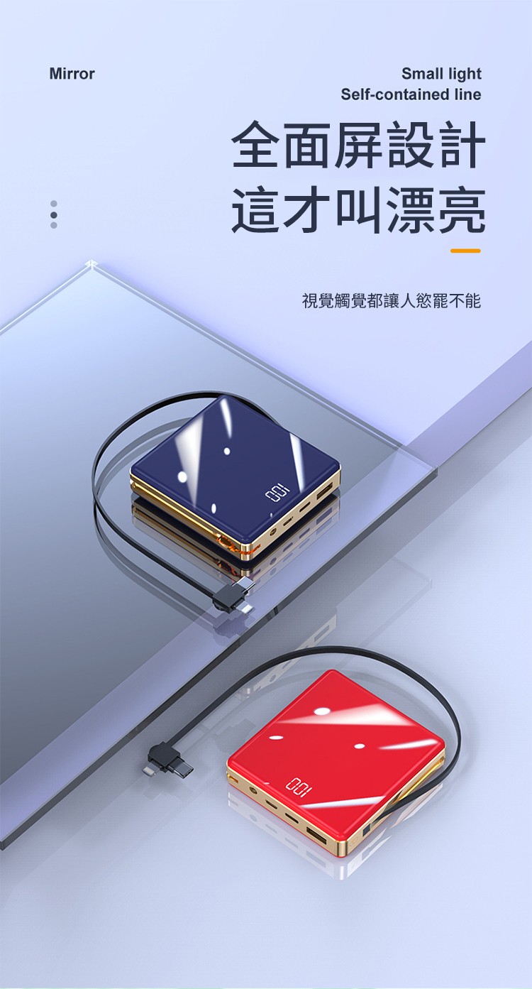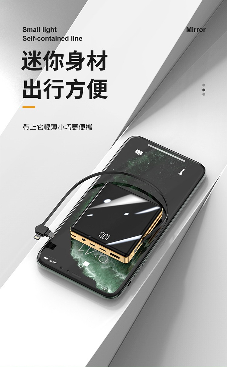 【新升級續航芯片】多線自帶線行動電源。 多功能定制電鍍鏡面20000毫安!活動第二個僅需300【贈送禮品盒】