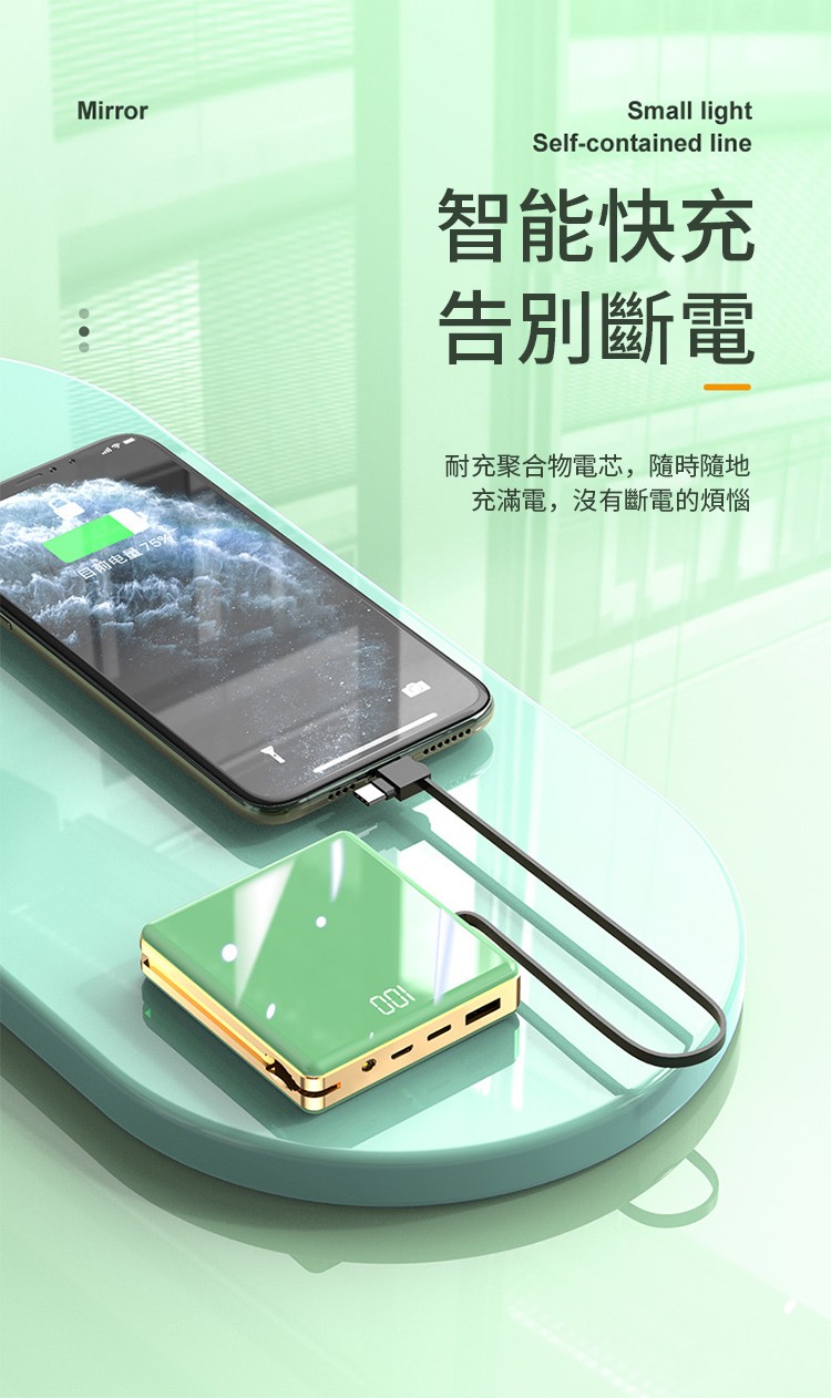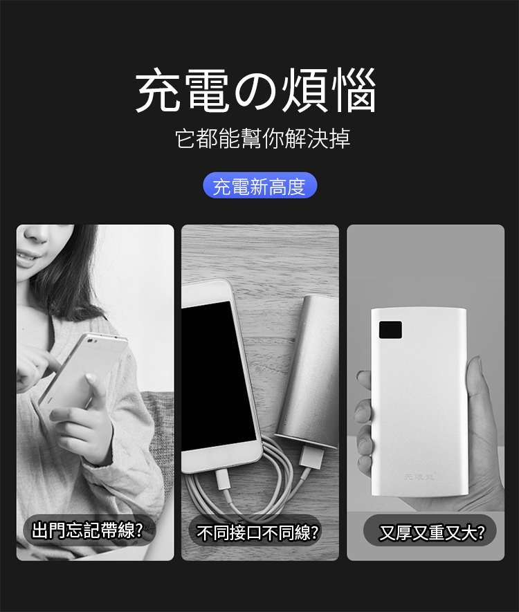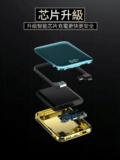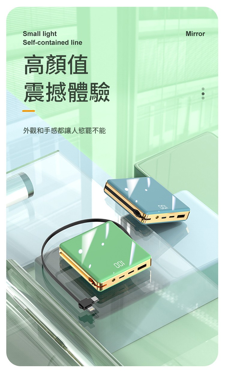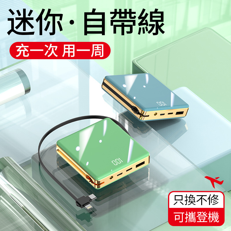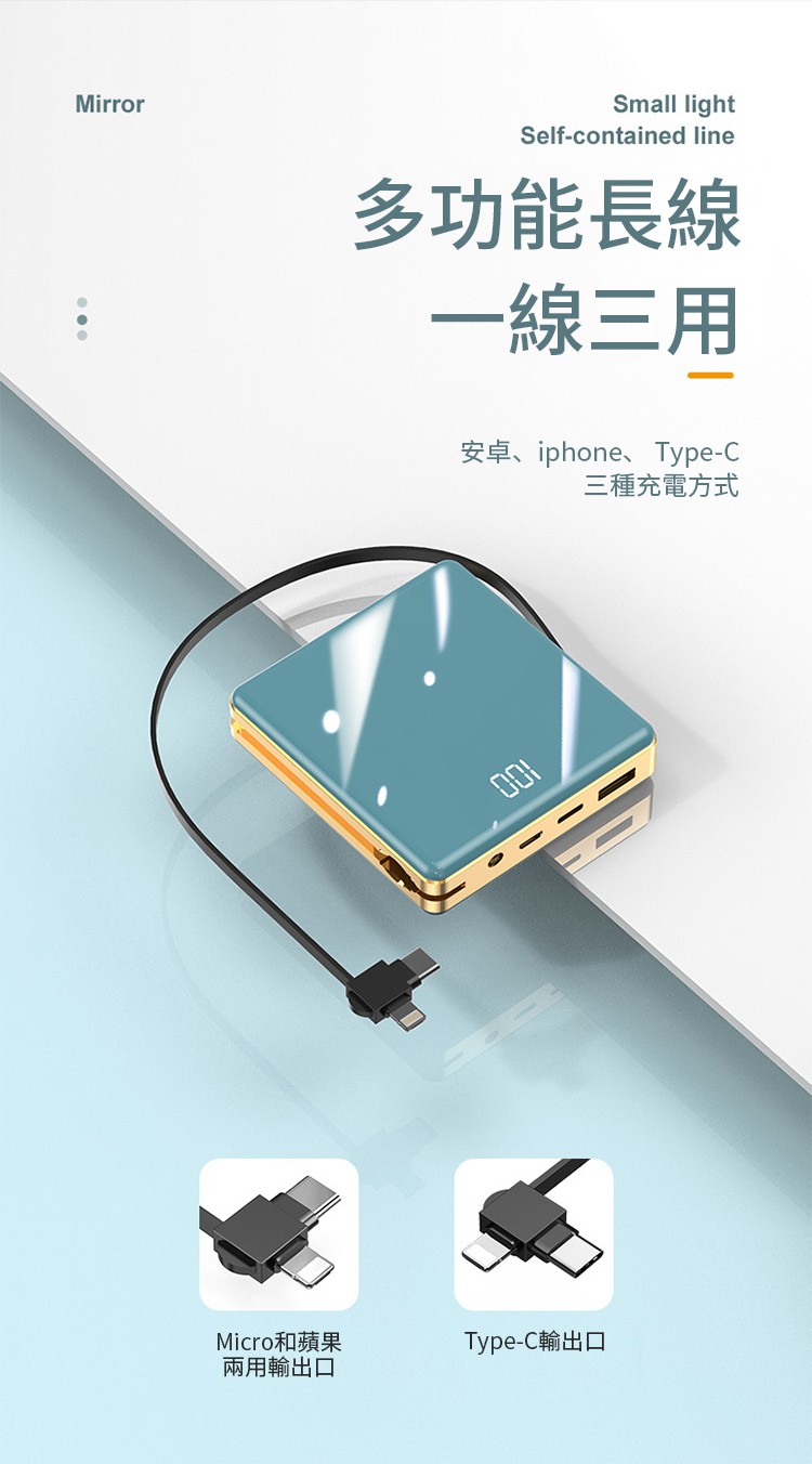 【新升級續航芯片】多線自帶線行動電源。 多功能定制電鍍鏡面20000毫安!活動第二個僅需300【贈送禮品盒】