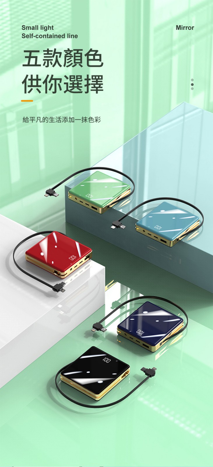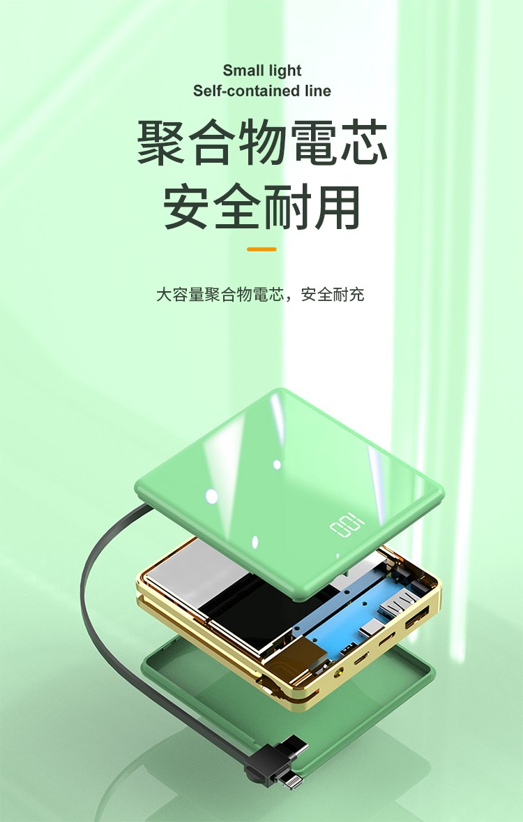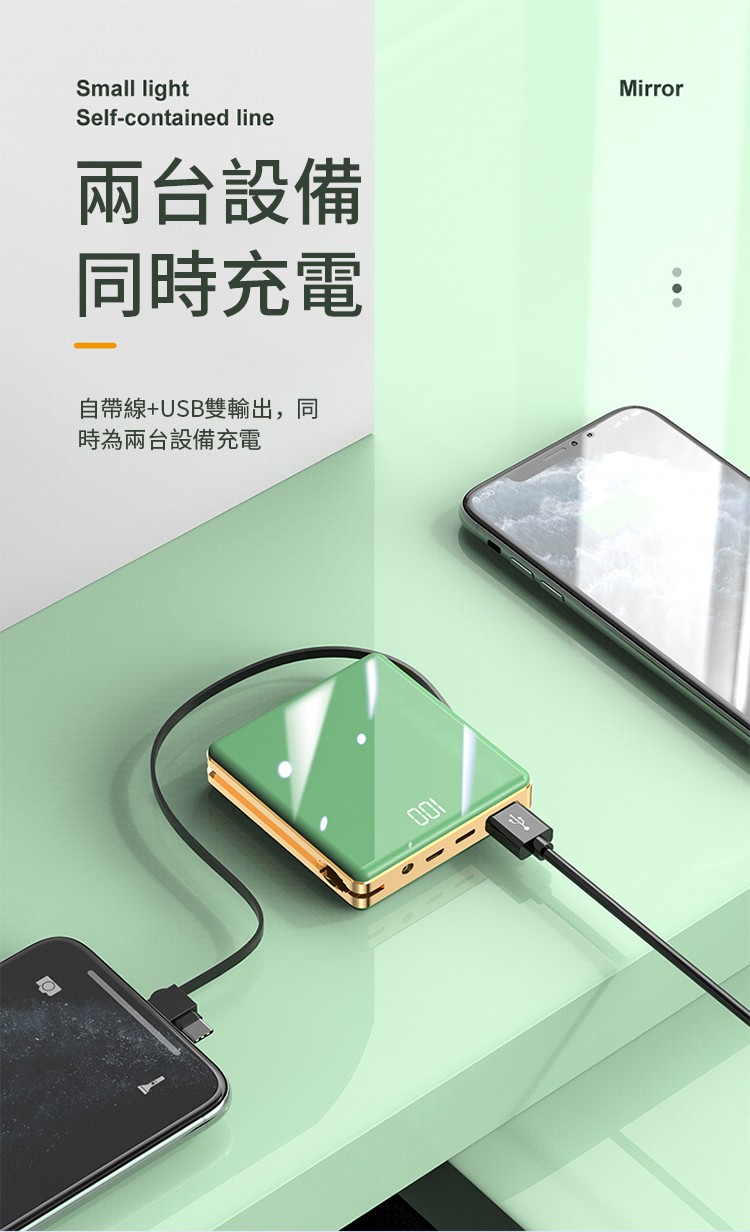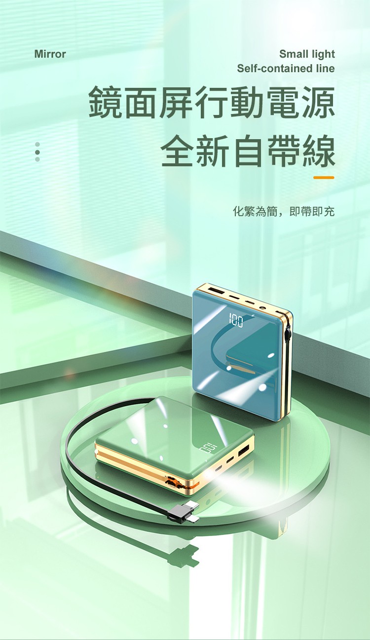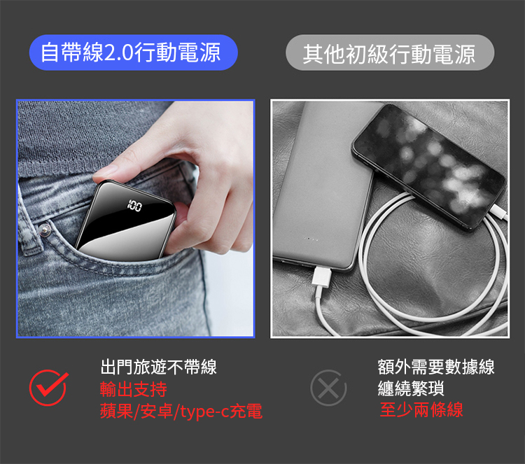 【新升級續航芯片】多線自帶線行動電源。 多功能定制電鍍鏡面20000毫安!活動第二個僅需300【贈送禮品盒】
